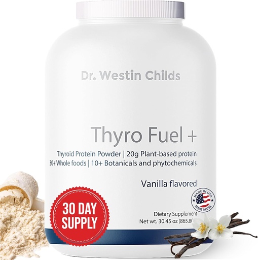 Dr. Westin Childs Thyro Fuel+ | Pea Protein Powder for Women | Thyroid, Digestion, & Muscle Support - Low Carb, Calorie, Non-GMO | Naturally Sweetened Vanilla, Gluten, Dairy & Soy Free - 30 Servings