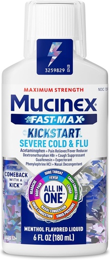 Mucinex Fast-Max Kickstart Severe Cold and Flu Medicine for Adults, Liquid Cold Medicine & Cough Medicine for Adults, Generic Expectorant Guaifenesin & Cough Suppressant Dextromethorphan, 6 Fl Oz