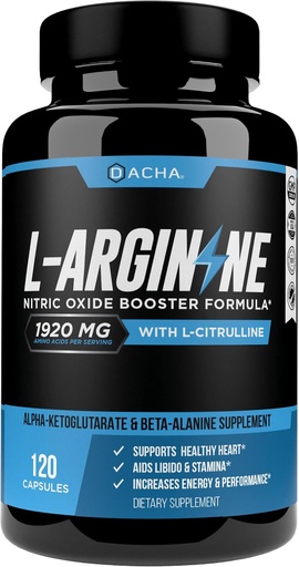 DACHA Premium L Arginine Pills 1920 MG - 120 VCAPS AAKG Nitric Oxide Precursor, L-Citrulline HCL, Beta Alanine, Essential Amino Acids for Energy, Muscle Growth, Heart Health, Vascularity & Stamina