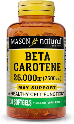 MASON NATURAL Vitamin A Beta Carotene 25,000 IU - Supports Healthy Vision, Cell Function & Immune Function, 100 Softgels