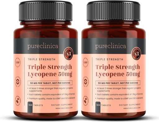 pureclinica Lycopene Supplement 50mg – High Strength Tomato Extract Antioxidant – 360 Tablets (1 Year Supply) – Prostate Health, Heart, Eye & Skin Support – GMO Free