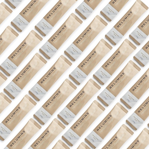 Relumins Marine Collagen Powder Drink Mix - Collagen Peptide with Glutathione, Green Tea, CoQ10, & Hyaluronic Acid Boosts Smooth Glowing Skin - 100 Powder Sachets x Vanilla Flavored + 10 Free Sachets