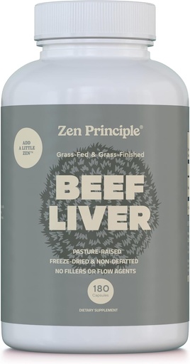 Zen Principle Ultra-Pure Desiccated Beef Liver, Grass-Fed & Grass-Finished on The Natural Pastures of New Zealand. No Hormones or GMO. 180 Capsules.