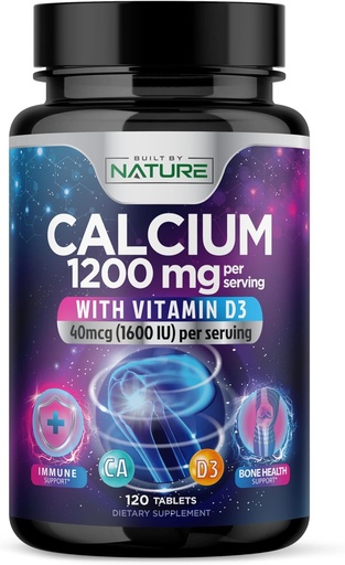 Calcium 1200mg with Vitamin D3 for Best Absorption - Advanced Bone Support Supplement, 1200 mg Calcium Carbonate & 1600 IU Vitamin D3, Slow Release for Immune Support, Easy to Swallow, 120 Tablets