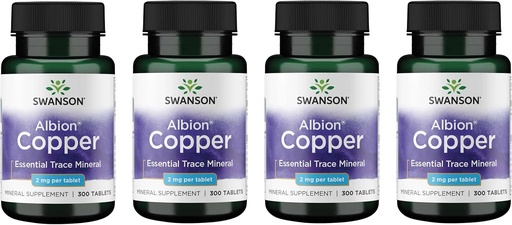 Swanson Copper Antioxidant Immune System Red Blood Cell Support Mineral Supplement (Copper chelate) 2 mg 300 Tabs (4 Pack)
