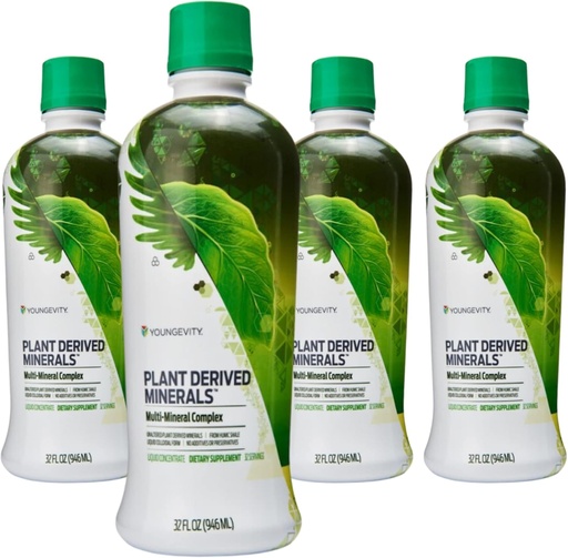 Youngevity Plant Derived Liquid Minerals - 77+ Natural Unaltered Trace Minerals - 19,000mg Plant Mineral Solids - Colloidal Form Humic Shale - (32 oz Pack of 4)