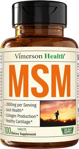 MSM 2000mg - Joint Support Supplement for Cartilage & Joint Health. Antioxidant Properties. Aids Inflammatory Response. Occasional Discomfort Relief - Back, Knees, Hands. Non-GMO. Vegan. 50 Day Supply